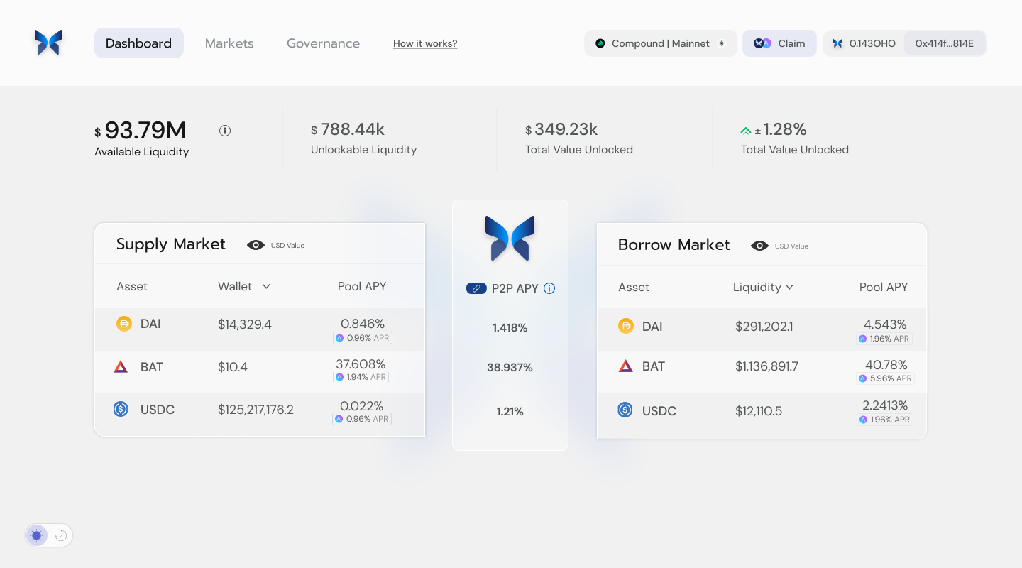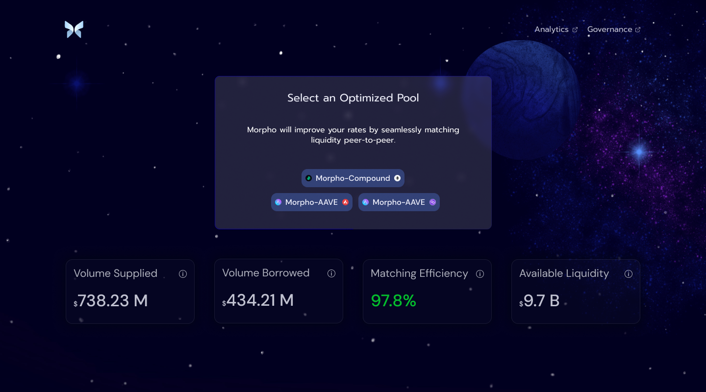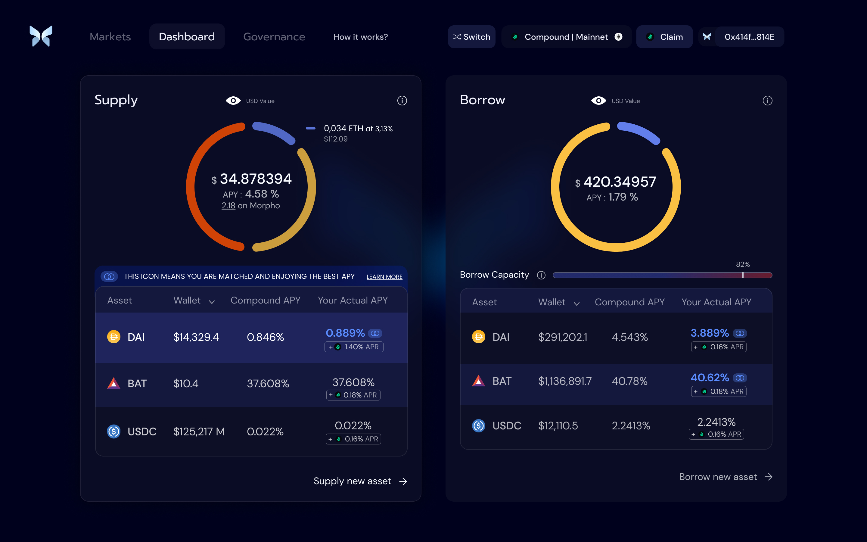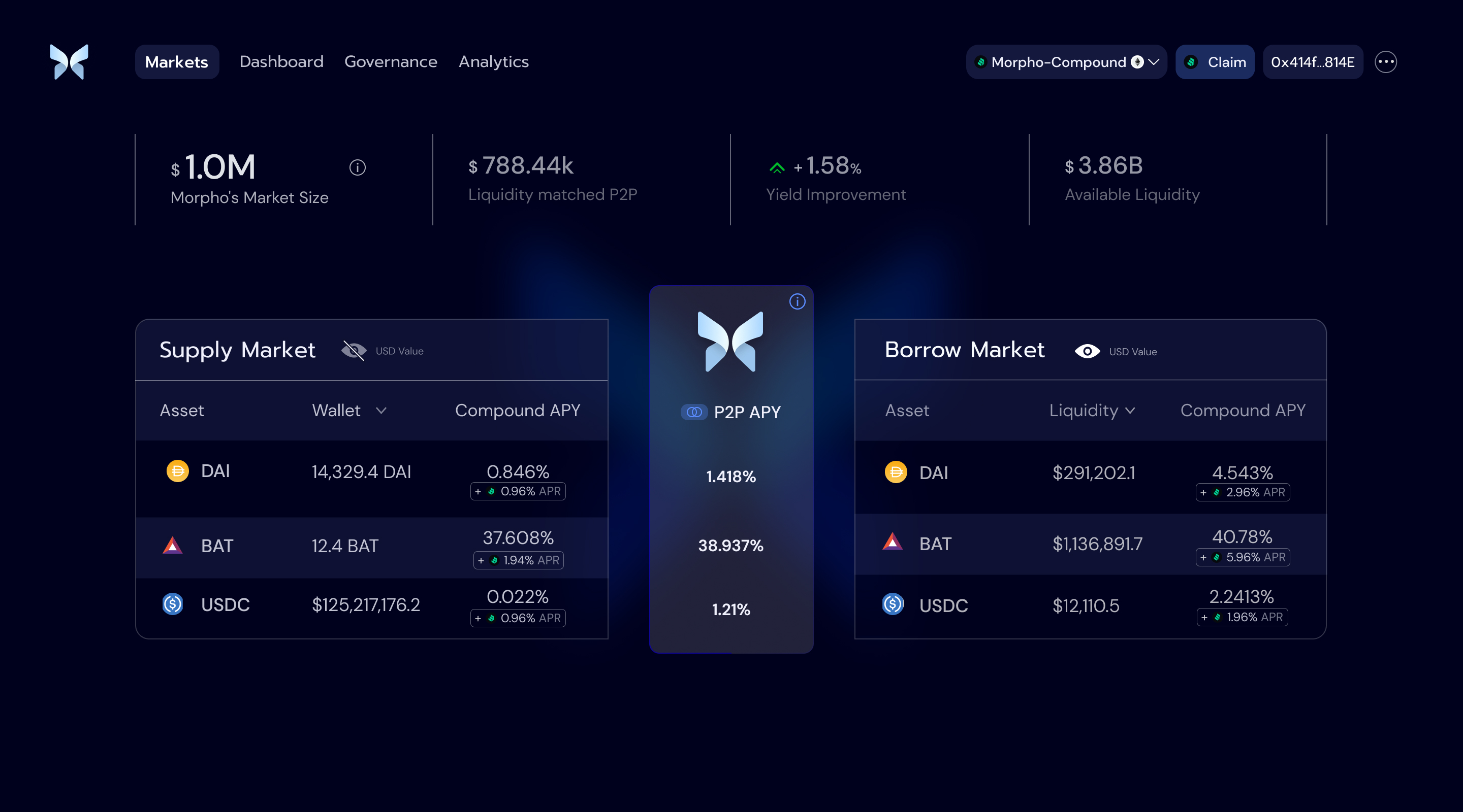 I was hired by Morpho as their first designer. My responsibilities included creating interfaces, creating a light theme based on the original dark theme, developing the visual identity, designing a landing page that would go on to win an Awwward, and establishing a design system.