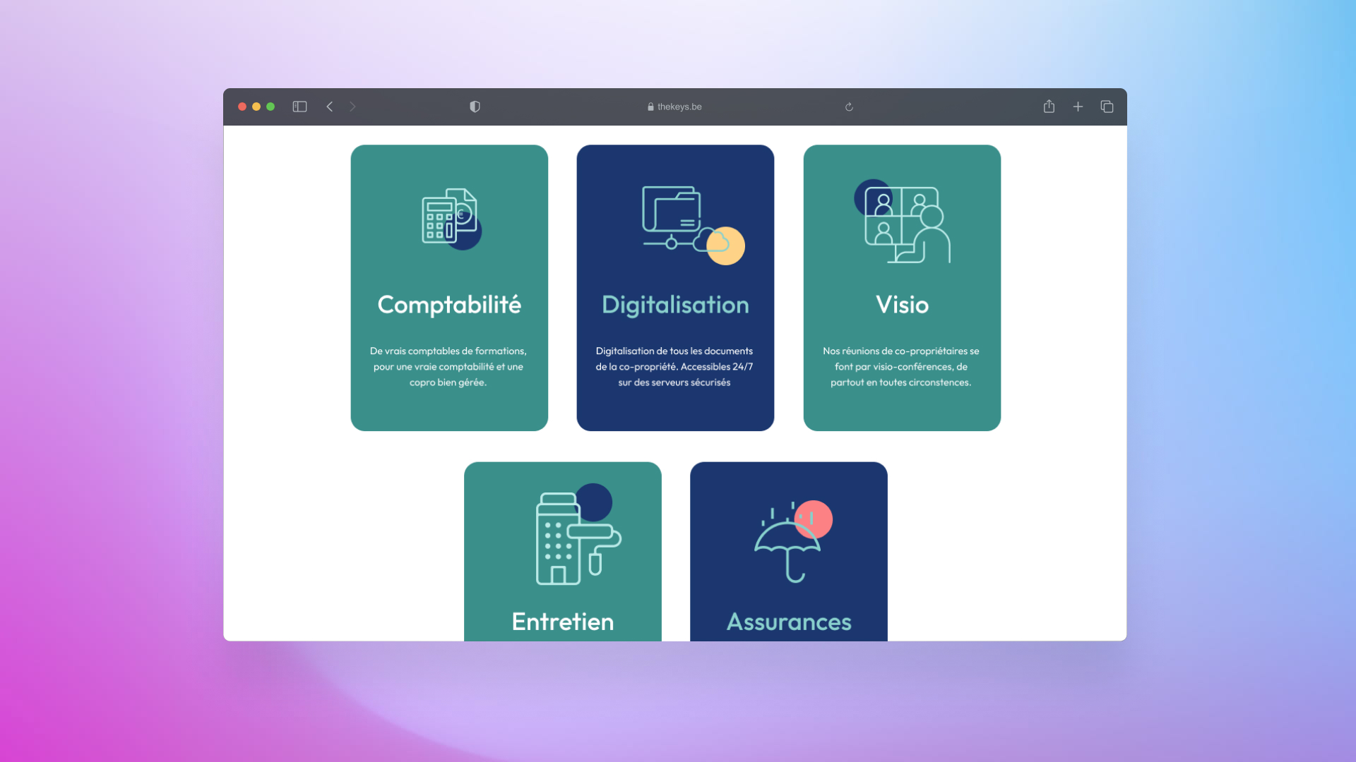 The Keys Group approached me to refresh their branding colors while keeping their logo, to which they were strongly attached. I strengthened their dark blue, adding it to their existing sky blue, which was previously the only color in their branding.